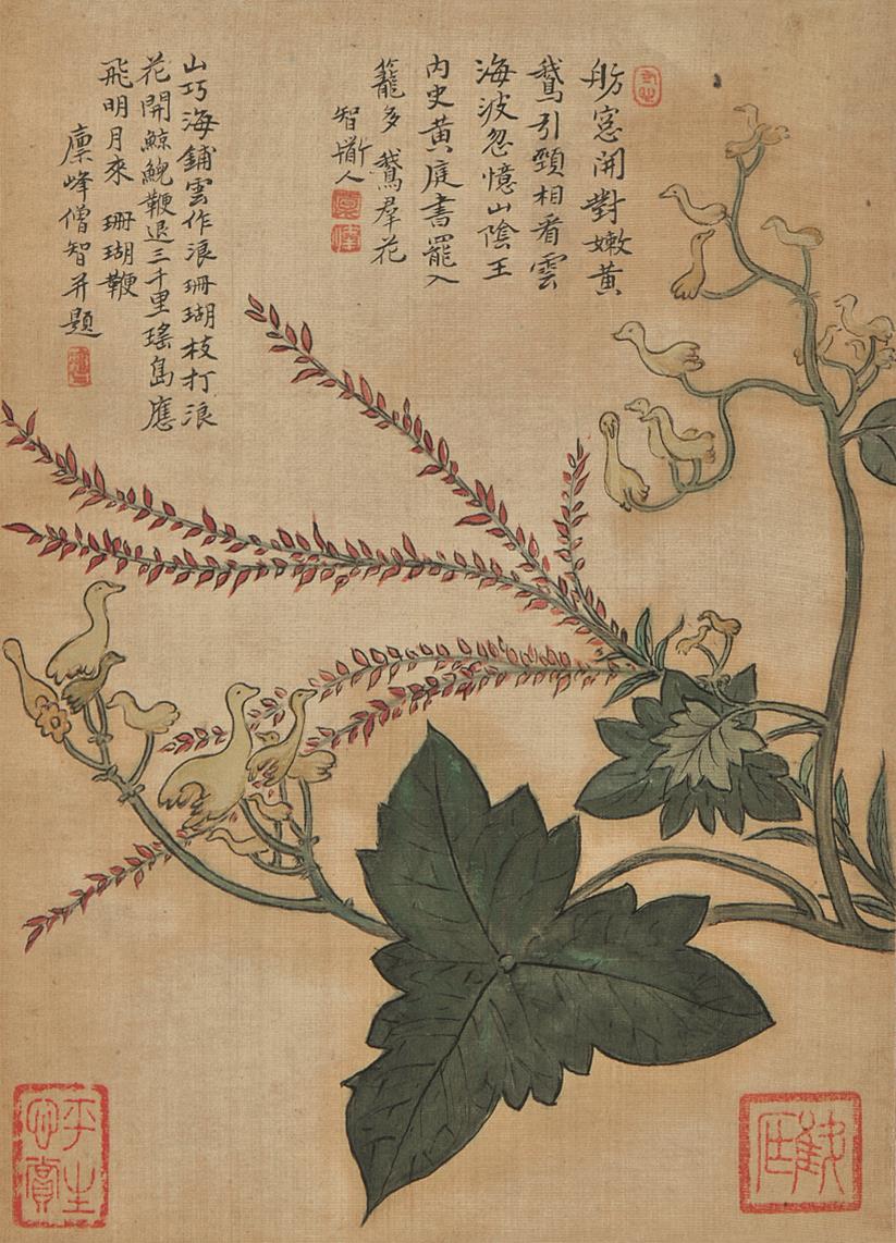 △释一智《山花图册》之“鹅群花、珊瑚鞭”