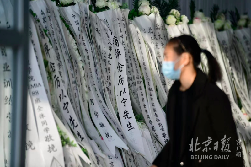 作为首批吊唁者,该校2009届博士生滕飞手持菊花,步入灵堂,面向先生遗像三鞠躬。“厉老师的精神品质一直影响着我。”他回忆,20年前在厉以宁中国经济改革与发展课堂上第一次见到他,“老师上课每次都很早到教室,提前写板书,把课程要点呈现在黑板上。”滕飞说,老师讲课从来都是开门见山,直奔主题,用调研中的鲜活案例、故事寓言等,深入浅出,带领学生感悟经济理论。“厉老师直到八十多岁还一直在教学一线指导学生,我们也会将他的治学精神一直传承下去。”